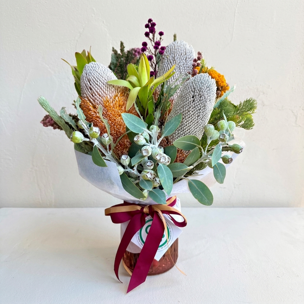 Beautiful, locally grown seasonal wildflowers arranged in our signature posy jar and wrapped in premium woven paper, ready for gifting. An easy, delightful gift perfect for any occasion.