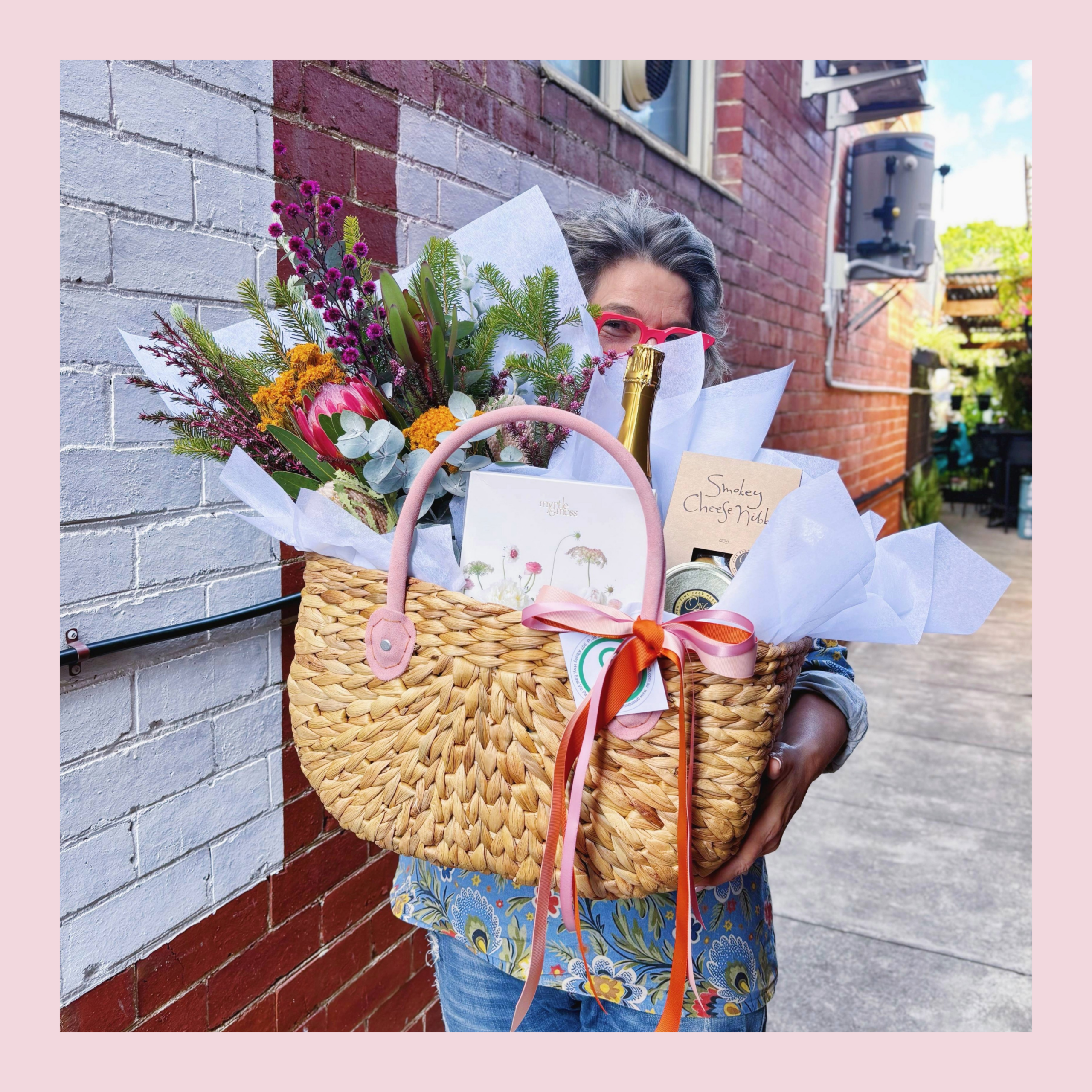 A gorgeous market basket by Robert Gordon, full to the brim with everything mum needs for the perfect night in with the ones she loves.