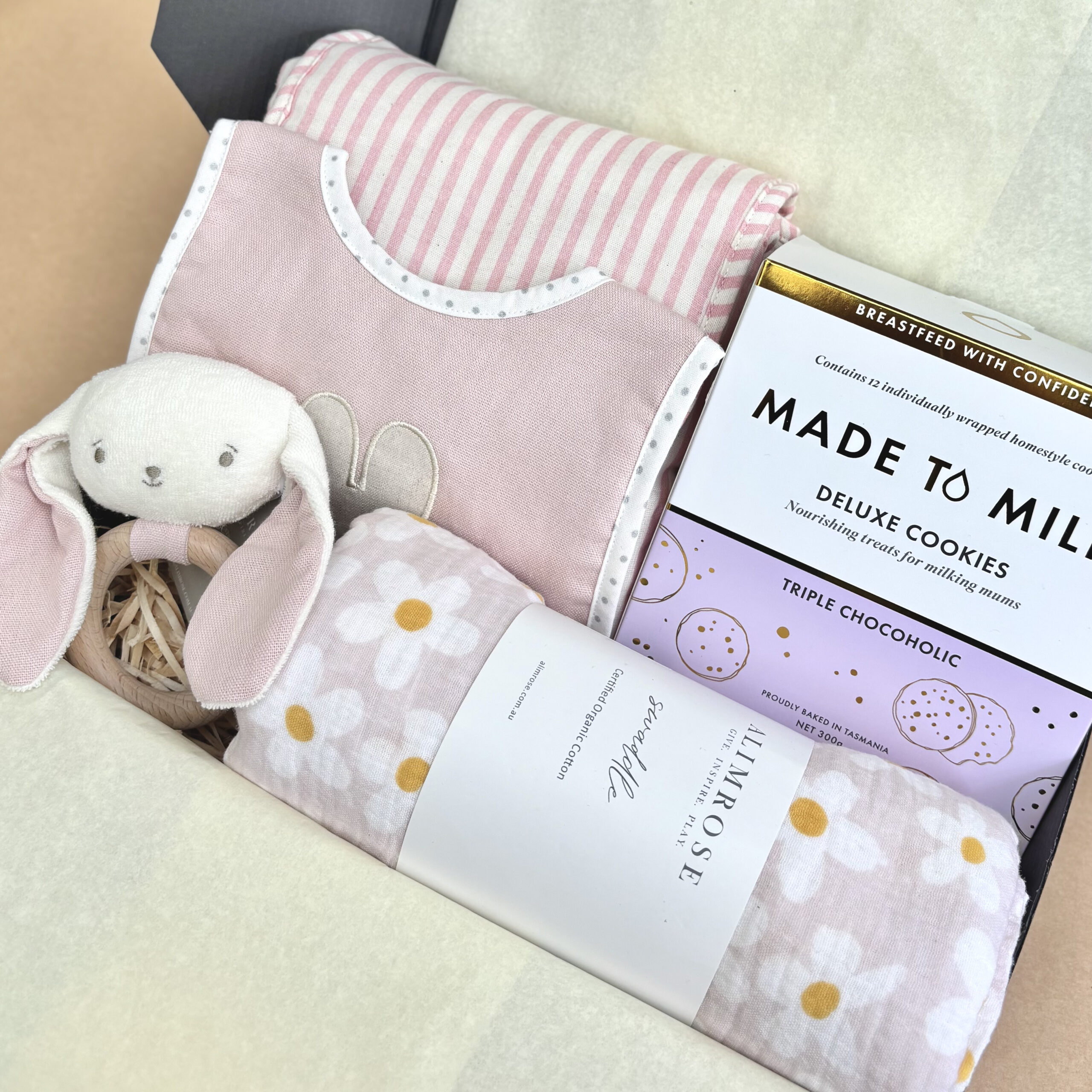 Completed with Australian made lactation cookies by Made to Milk. A Sweet treat for New Mums and a delicious way to naturally increase and encourage milk production.