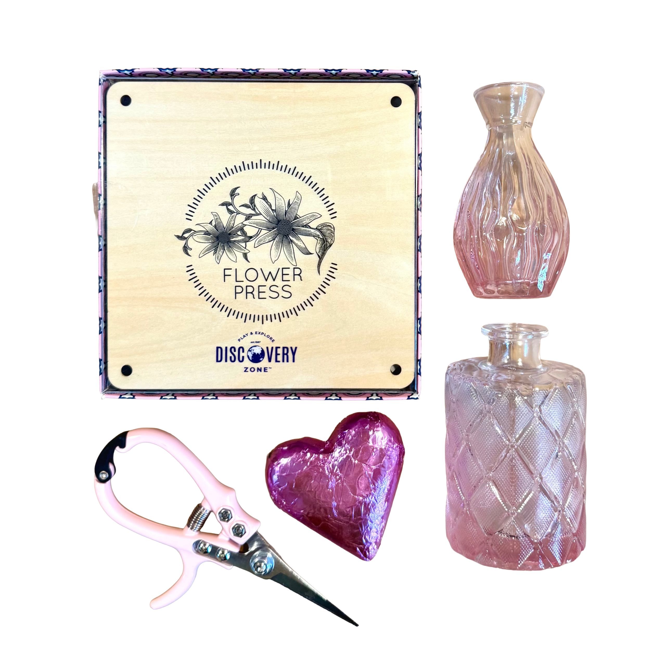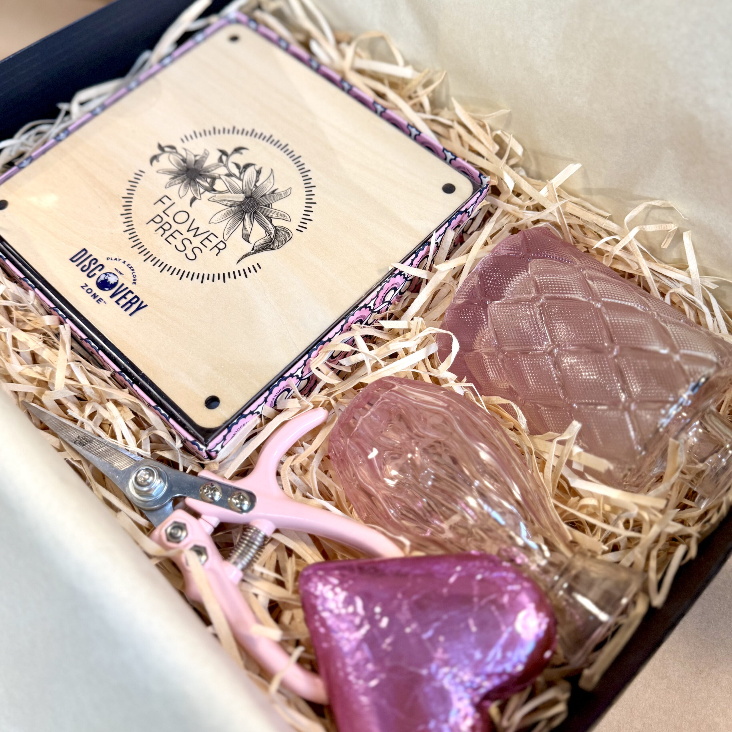 Perfect for the gardener or creative soul, a gorgeous and sturdy wooden flower press invites the beauty of nature inside. With heirloom quality mini snips to pick favourite blooms with ease, and sweet petite posy jars to keep cuttings fresh as a daisy until they are lovingly preserved. Completed with a chocolate heart, to make life a little sweeter.