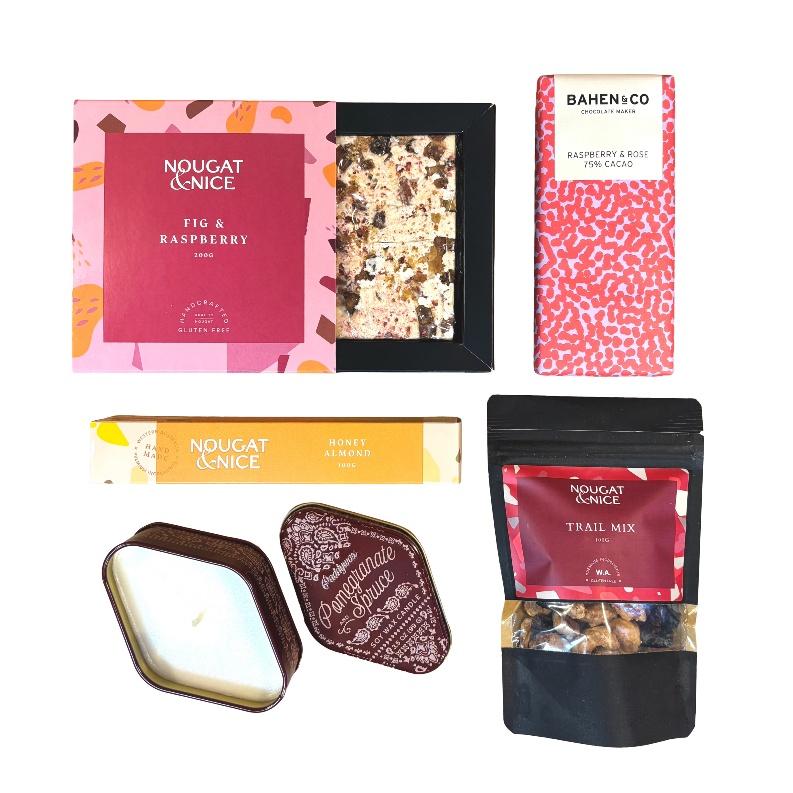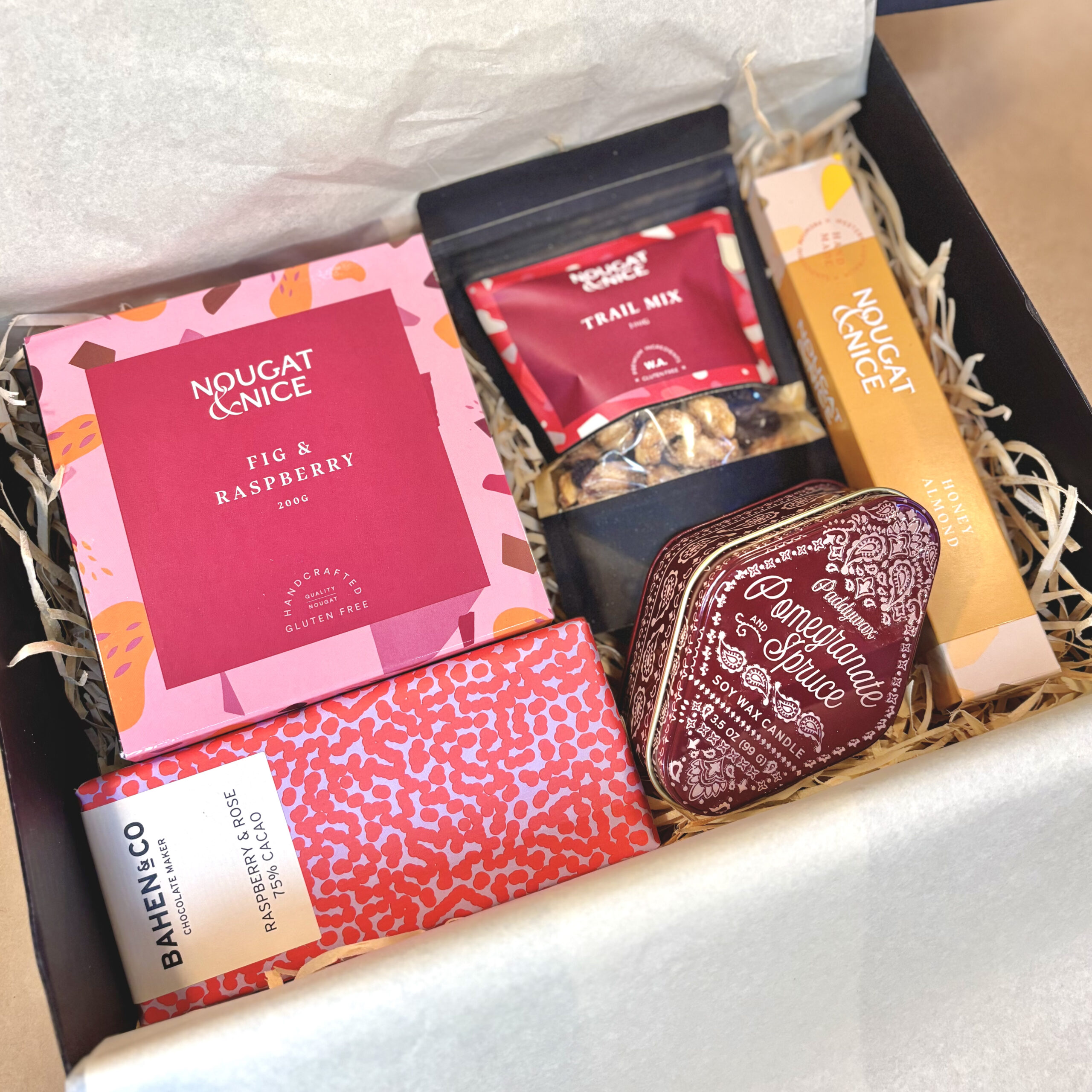 For life’s sweetest moments. Perfect to share or enjoy all to yourself, indulge in a selection of gourmet, WA made sweets. Completed with a gorgeous, pomegranate scented Paddy Wax candle, for lasting sweetness.