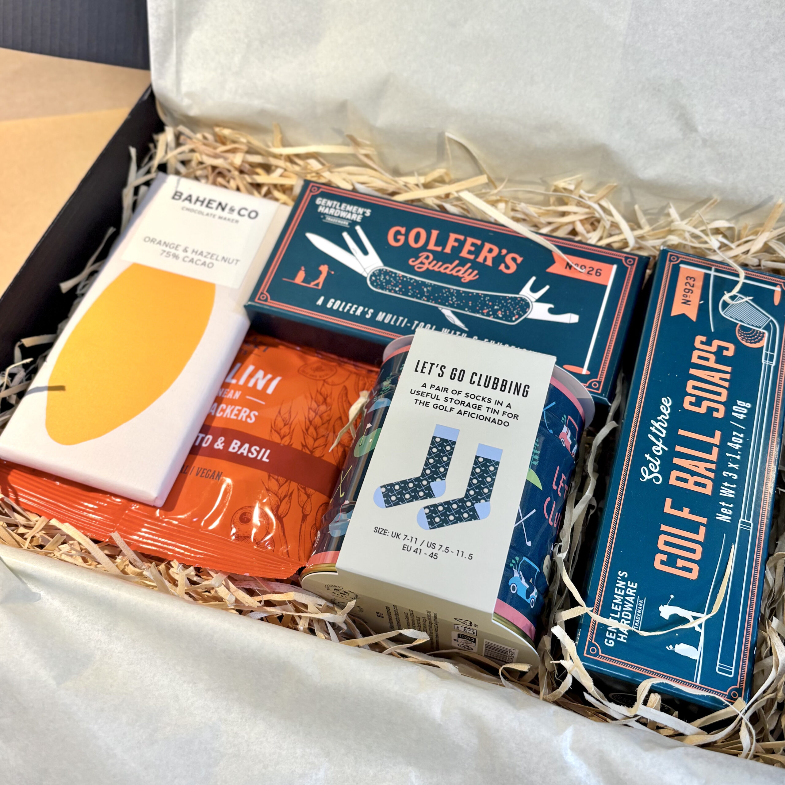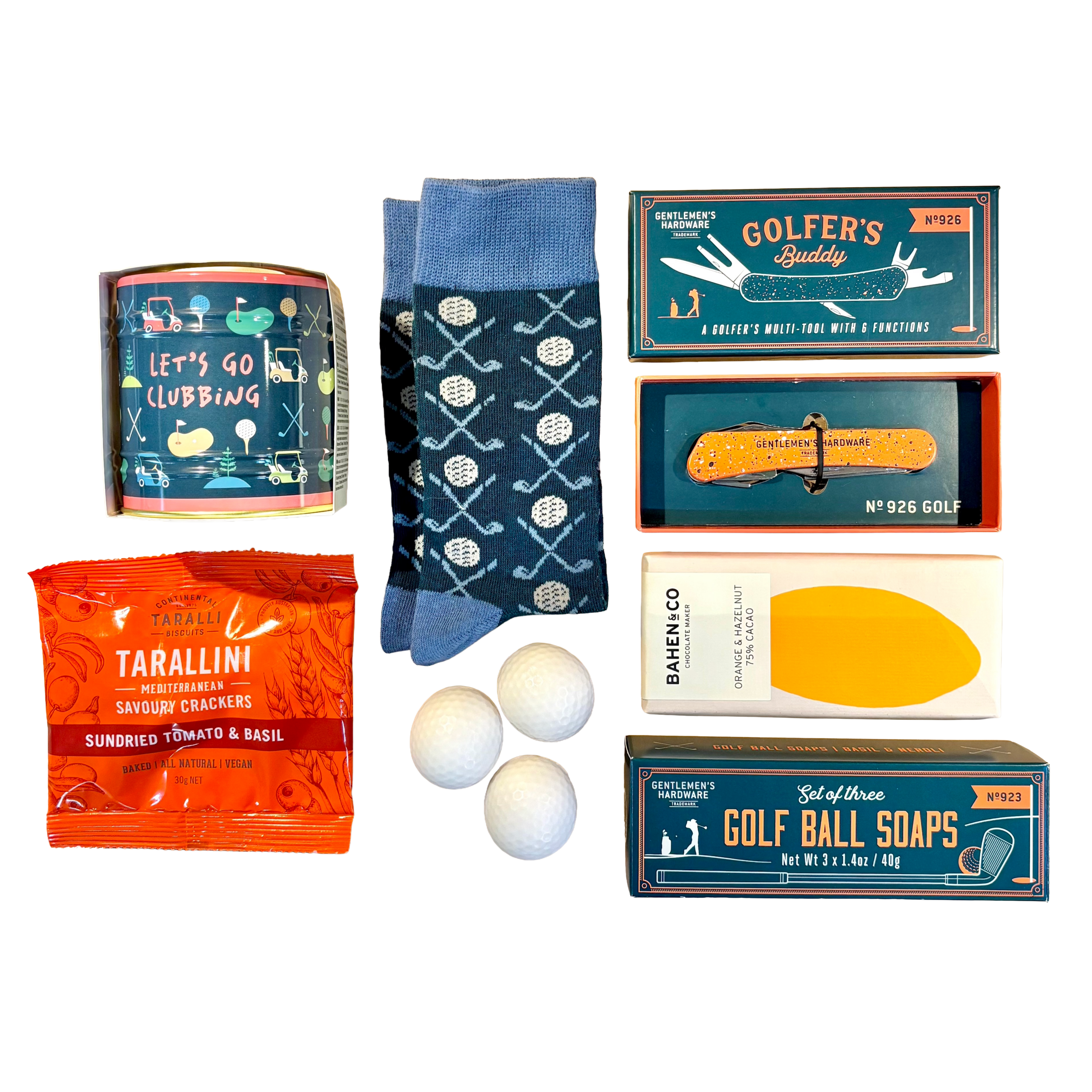 Tee off in style with The Ace! Perfect for the golfing enthusiast, give them a great day out on the green with a quality selection of golfing themed goods and tools. From comfortable, 100% organic cotton socks for long walks on the fairway, handy multi-tool to keep things running smoothly, and a trio of golf ball shaped soaps for the end of a long day.
